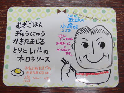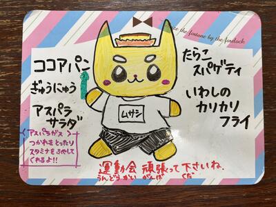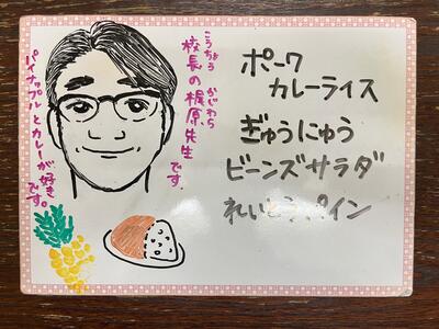 本日の献立ボードには、教頭先生の似顔絵が登場しました。子どもたちは、「教頭先生の顔だ!」と言いながら、しみじみとながめていました。