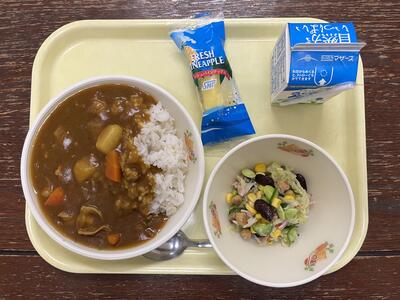 今日の献立は、「ひのくにパン、ビーフシチュー、ビーンズサラダ、牛乳」です。ビーフシチューは、丁寧に煮込んだお肉や野菜の深い旨味を感じるビーフシチューです。お肉は2時間以上煮込んであるとのことで、柔らかい美味しいお肉をいただきました。ビーンズサラダは、いろいろなお豆の食感を楽しみながら、食べ応えありのサラダでした。給食の先生方の愛情いっぱいの給食をいただきました。今週もおいしい給食ありがとうございました。