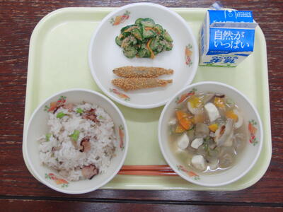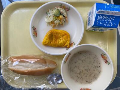 水泳後の学年もあり、「肉団子のクリーム煮」の温かさが有り難かった子もいたようです。「ひじきとツナのサラダ」をおかわりする子もいて、楽しく給食の時間を過ごしていました。