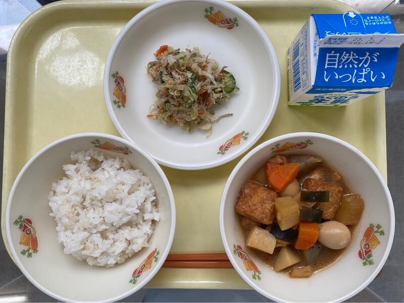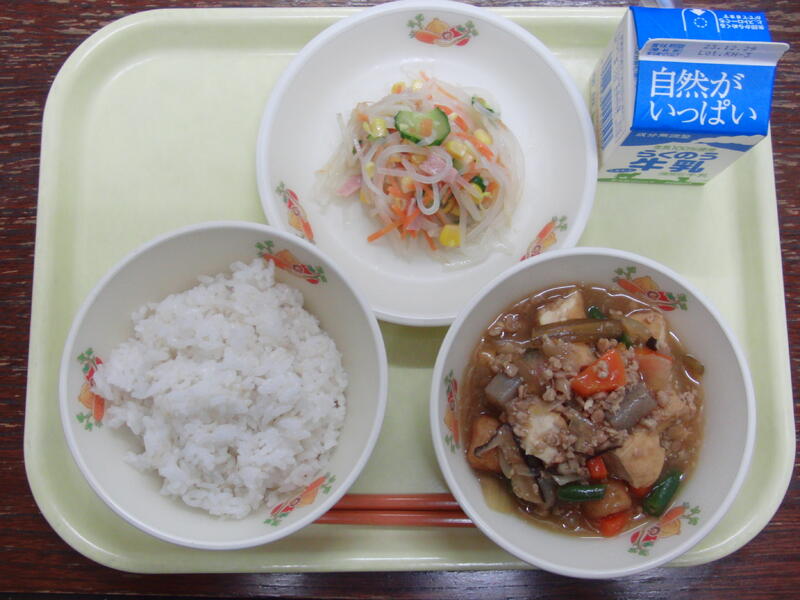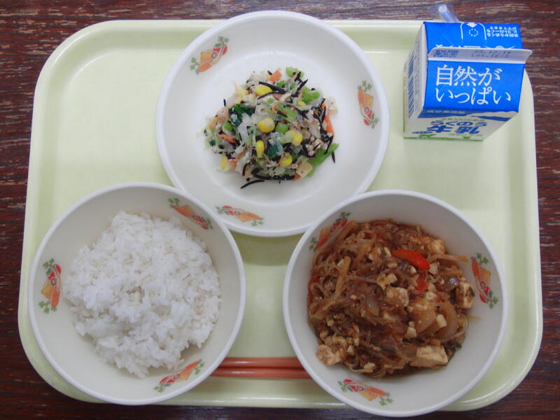 「麻婆春雨」は、子どもたちにも人気だったようで、ご飯と合わせながら黙々と食べる様子が見られました。とても美味しかったです。「ひじきとツナのナムル」は、さらっと食べることができて、これも美味しかったです。