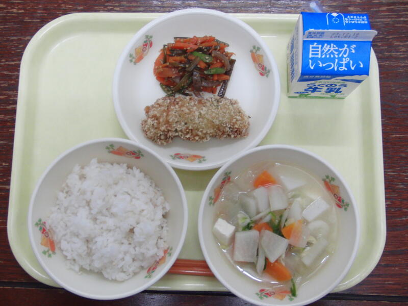 「ホキ」という魚を食べる機会はなかったのですが、白身魚でクセがなく、大変美味しく調理されていました。具だくさんの「味噌けんちん汁」は、大変からだが温まり、みんな美味しそうに食べていました。「人参きんぴら」も、子どもたちが食べやすく作られていて、とても美味しかったです。