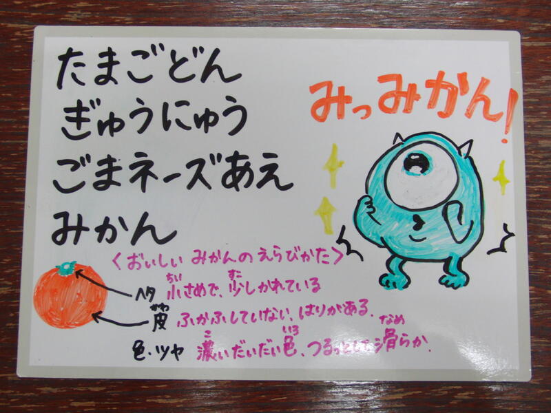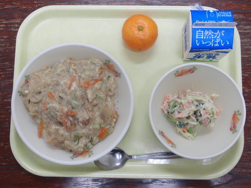「たまごどん」の卵がふわふわしていて、子どもたちも食欲が進んでいたようでした。また、本日はミカンがついていましたが、一房ずつ大切に食べる子、豪快に何房もまとめて食べる子など、食べ方も様々でした。