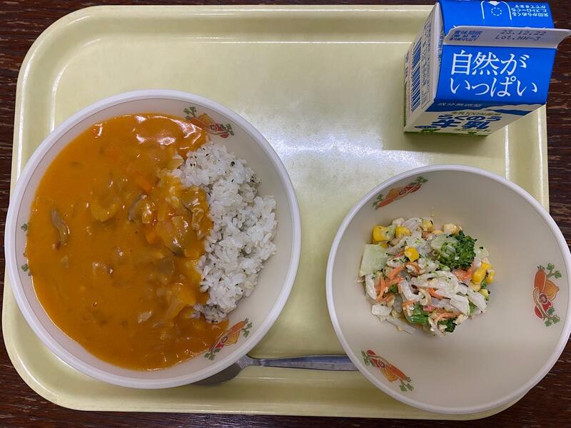 「トマトクリームライス」は、トマトのちょっと苦手な子でも、食べやすく調理されていて、とてもまろやかな味でした。「冬野菜のサラダ」も栄養満点でしたので、しっかり食べて、風邪を引かない丈夫な体を作っていきましょう。