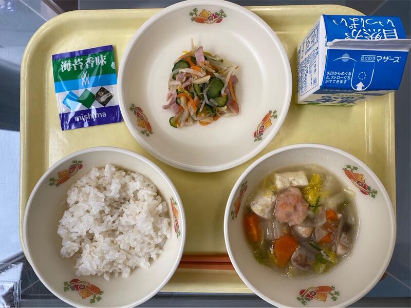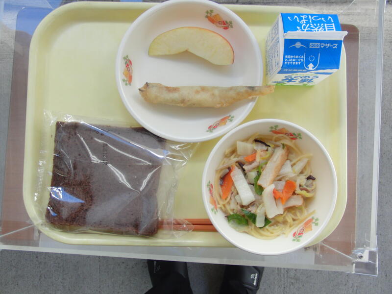 本日の献立は「白菜ちゃんぽん」でしたが、楽しみにしていた子も多かったのではないでしょうか。子どもたちが食べるタイミングを考えて調理されていて、熱々で美味しいちゃんぽんをいただきました。ししゃもの天ぷらも、美味しくいただきました。