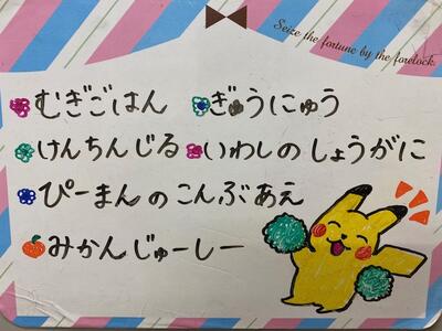 今日の献立は「ミルクパン、ラビオリスープ、トマトミートオムレツ、人参サラダ、牛乳」です。ラビオリスープは、一口サイズで食べやすいラビオリと野菜もたっぷり、ミルクパンともよく合って美味しくいただきました。人参サラダもシャキシャキした食感と野菜の美味しさを感じながらいただきました。今月もおいしい給食ありがとうございました。