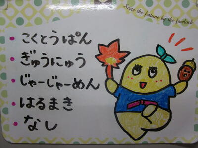 今日の献立は、「セルフビーンズチリドック、牛乳、秋野菜スープ、フルーツミックス」です。セルフビーンズチリドックは、ビーンズチリドックの味付けよく、パンともよくあっていておいしくいただきました。秋野菜のスープは、さつまいもや小松菜、しめじ等々が沢山入っていてとてもおいしかったです。フルーツミックスは、子ども達、大喜びでした。今週も美味しい給食、ありがとうございました。