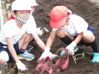 1年生が大切に育てていたサツマイモの苗が大きく育ち、今日収穫の日を迎えました。