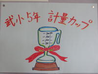 校内を回りながら子どもたちの学習の様子を見て回っていると、ある掲示物に目がとまりました。それには、「武小5年 計量カップ」と書かれていました。給食の時間に再び回って、この掲示の意味を尋ねてみました。5年生では、体育の時間に4グループに分かれてティーボールの対抗戦を行っているそうです。リーグ戦で戦っていくそうですが、そこで優勝したチームが、この軽量カップを手にすることができるとのこと。それを聞いて納得するとともに、大笑いしてしまいました。このようなユニークな発想は大好きですし、「頑張れ!」と応援したくなりました。このリーグ戦の結果を見ることが、これから楽しみになりました。