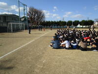 消防署の方々にもご協力いただき、子どもたちの避難する様子や先生方の動きなどを見て、注意すべき点を教えていただきました。また、消火器の使い方について、水消火器で実演していただきました。子どもたちは、訓練放送をよく聞き、担任の先生の指示に従って静かに避難することができていました。避難場所に集合した際に、若干おしゃべりの声が聞こえたことを注意されました。先生方の動きとしては、初期消火の状況を集約する方法を考えてほしいと助言を受けました。助言していただいたことについては、次回の訓練に生かし、より安全に子どもたちが生活できる環境づくりに力を入れていきたいと思います。