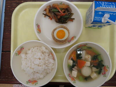 今日の献立は、「ひのくにパン、ビーフシチュー、ビーンズサラダ、牛乳」です。ビーフシチューは、丁寧に煮込んだお肉や野菜の深い旨味を感じるビーフシチューです。お肉は2時間以上煮込んであるとのことで、柔らかい美味しいお肉をいただきました。ビーンズサラダは、いろいろなお豆の食感を楽しみながら、食べ応えありのサラダでした。給食の先生方の愛情いっぱいの給食をいただきました。今週もおいしい給食ありがとうございました。