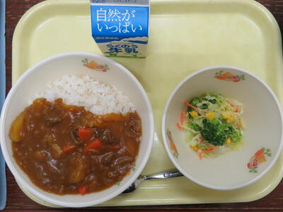 今日の献立は、「ひのくにパン、ビーフシチュー、ビーンズサラダ、牛乳」です。ビーフシチューは、丁寧に煮込んだお肉や野菜の深い旨味を感じるビーフシチューです。お肉は2時間以上煮込んであるとのことで、柔らかい美味しいお肉をいただきました。ビーンズサラダは、いろいろなお豆の食感を楽しみながら、食べ応えありのサラダでした。給食の先生方の愛情いっぱいの給食をいただきました。今週もおいしい給食ありがとうございました。