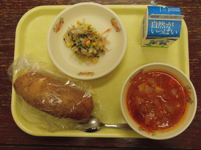 本日の献立にも、子どもたちに人気がある「きなこ揚げパン」が出されました。口のまわりに「きなこ」をつけながらも、美味しく食べる様子がありました。「ミネストローネ」は、色々な野菜をたっぷりと使ってあり、具沢山スープでした。本年度もあとわずかということもあり、子どもたちに人気のメニューが次々と考えられているようです。