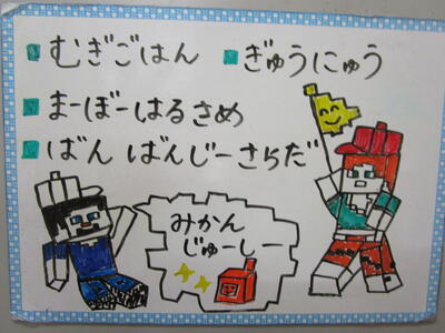 今日の献立は、「麦ご飯、マーボーはるさめ、バンバンジーサラダ、牛乳、みかんジューシー」です。マーボーはるさめは、はるさめが、ツルンとした喉ごしで、味がしみ込んでいました。具材も多く、ご飯にピッタリの美味しさでした。バンバンジーサラダも食べやすく、元気一杯になりました。今日は、運動会に向けて全校で予行練習を行いました。みんな沢山食べてください。今日もおいしい給食ありがとうございました。