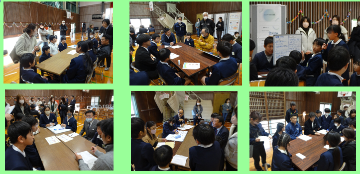12月5日(金)、6年生が、150周年記念事業に向けてのビジョンを発表しました。6つのブースに分かれて、大人と6年生が「何ができるか?」について、熱心に話し合い(熟議)をしました。