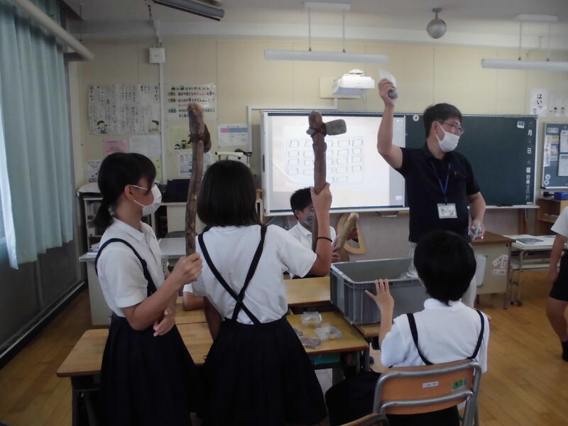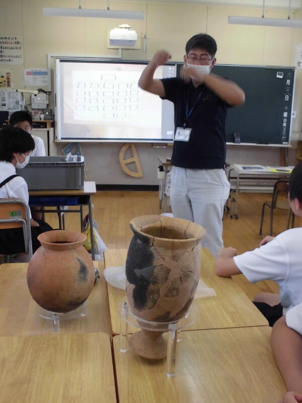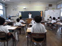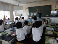 11月4日(火)、6年生教室に大浜在住の地域の方をGTとしてお招きし、大浜飛行場について詳しく教えていただきました。今の有明中学校の近くに、戦争中にあった飛行場です。戦時中の中学生から高校生くらいの若者が、戦争に行くために飛行機の操縦の訓練をしていました。
