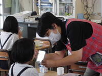 6月19日(木)、6年家庭科の学習で、今村先生(地域学校協働活動推進員)と地域ボランティア2名の方に来校いただき、ミシン指導のお手伝いをしていただきました。