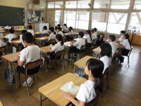 本日の避難訓練に向けて、先日17日(木)、災害時の避難経路及び基本行動について確認をしました。そして、本日、9:35分、地震発生の想定で、避難訓練を実施しました。全学年、およそ3分半で所定の運動場避難所に集合することができました。地震は、いつ、どこで起きるかわかりません。ご家庭でも、地域の避難場所や避難方法についてお話ししていただければと思います。
