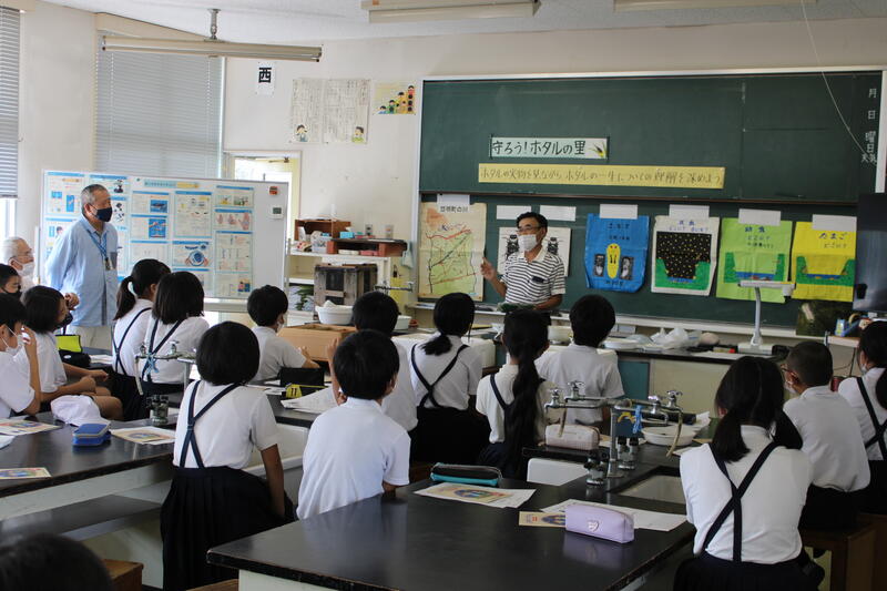 今日は、岱明町ホタルを育てる会(代表:今村 正先生)の皆様を招いて、ホタルの学習を行いました。ホタルの住みやすい環境や飼育の仕方、雄と雌の見分け方など、いろいろなことを教えていただきました。子供たちも興味・関心が高く、熱心に質問していました。ホタルの住む環境を大切にすることが、引いては私たちの安全な暮らしを守ることにつながると学びました。