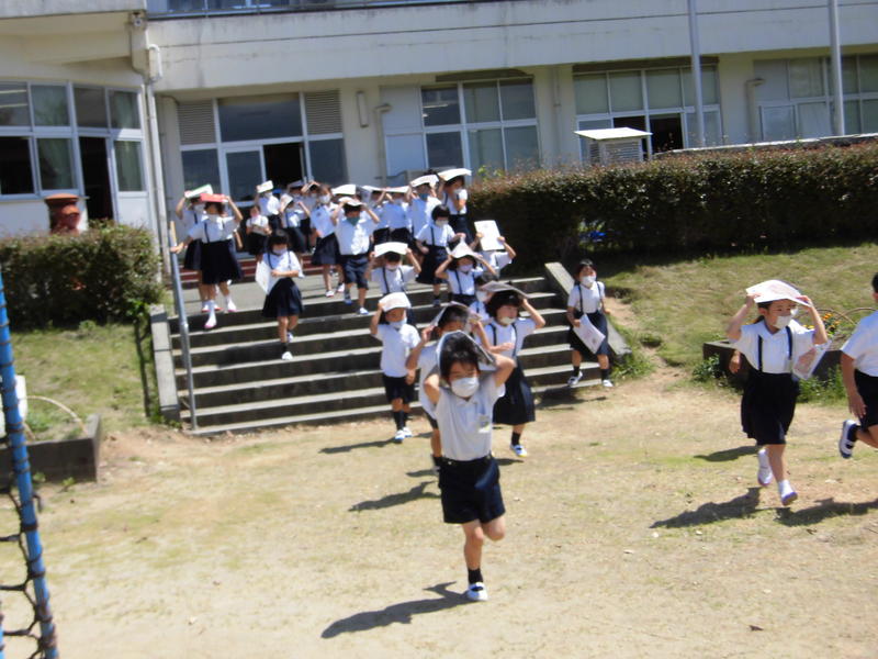 ~落下物から頭を守る行動~ ~間隔を空けた並び方~ ~命を大切にする心の育成~