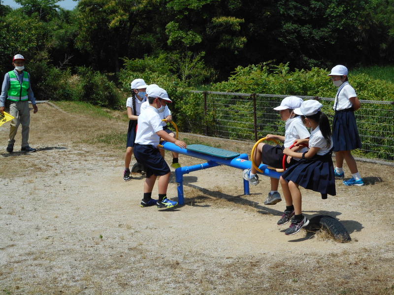 校区の特徴を学ぶためです。六地蔵や近隣公園、古閑神社などに行きました。