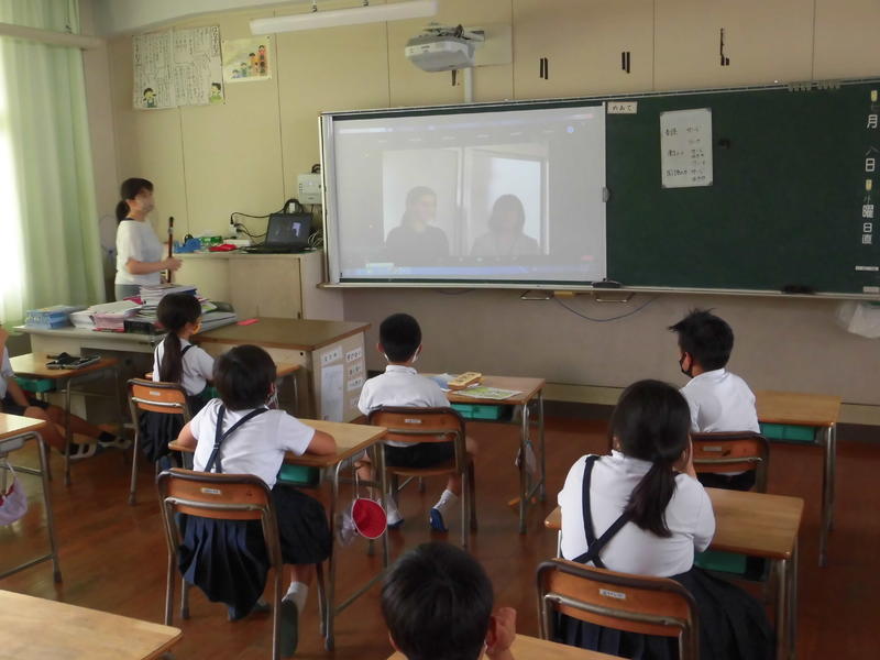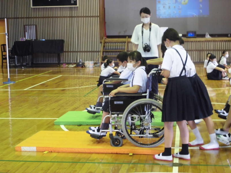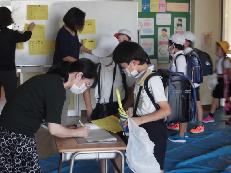 今日は、いろいろな活動がありました。まず、1年生のプール開きです。はじめてのプールで、ドキドキワクワクの一時間でした。プールの入り方から教わりました。次は、4年生の福祉体験です。社会福祉協議会の方からのユニバーサルデザインについての説明の後、ブラインドウォーク、車椅子体験をさせていただきました。ちょっぴり緊張していたようです。最後に、ALT(外国語指導助手)として、4年間本校の子供たちに英語を教えていただいたイヴ先生とお別れすることになり、全体で集まることができないので、ZOOMを活用したオンライン集会を開きました。画面を通して、直接、メッセージを聞くことができました。イヴ先生、長い間、大変お世話になりました。