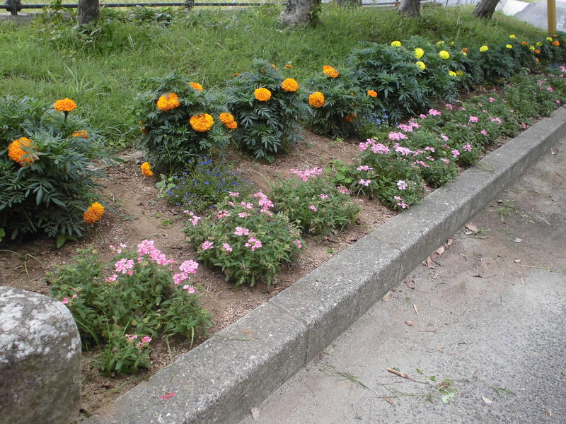 二つ目は、花壇の手入れのことです。担当の花壇の草取りをして、パンジーやキンギョソウ、葉ボタンを植えて、
