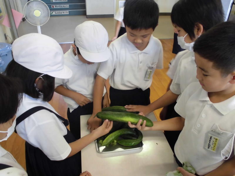 今日は、きゅうりとオクラを収穫しました。自分たちで育てた野菜の味は、いかがでしょうか?