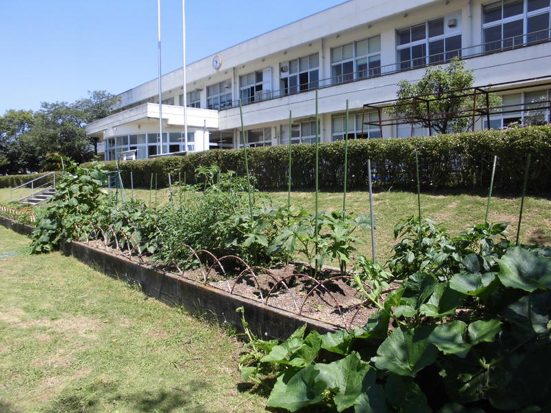 2年生では、生活科の学習で野菜を栽培しています。トマトやかぼちゃなど、6種類の野菜を育てています。