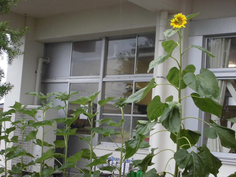 3年生の学習で育てている『ひまわりの花』が咲きました。一番背の高いひまわりです。
