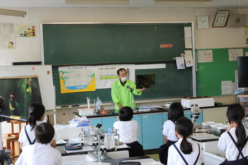 子供たちは、実際に顕微鏡で幼虫を観察して、感動していました。