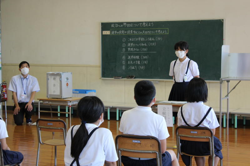 玉名市選挙管理委員会事務局の方に「選挙に関する講話」をしていただきました。実際に選挙の模擬体験をすることで、選挙の仕組みや投票の仕方を学ぶことができました。「今日、『学び』を深められたので、18歳になったら、投票に行きたいです。」などの感想がありました。ひまわりテレビで放送があるかもしれません。
