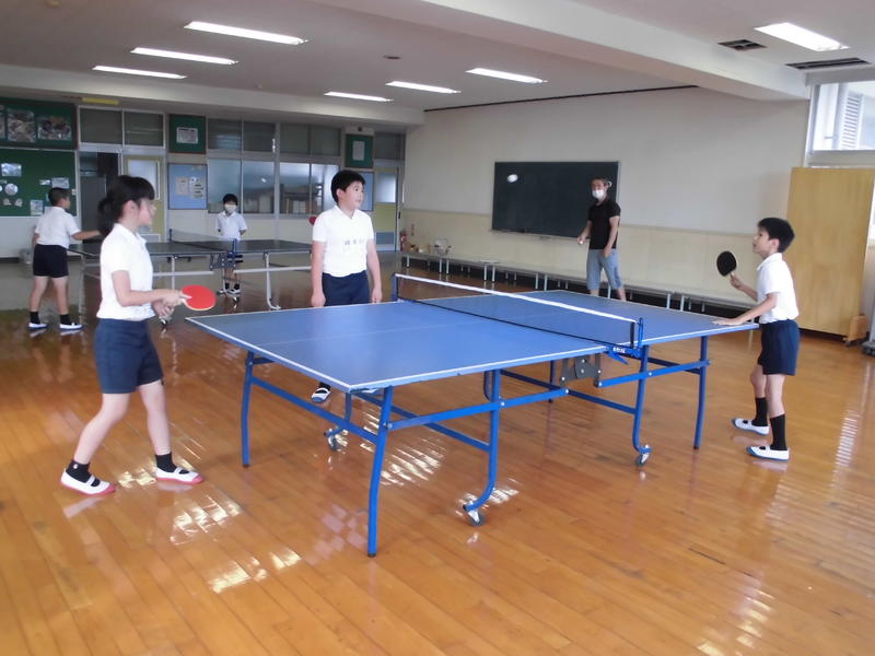 本校は、7つのクラブがあります。今日は、「卓球クラブ」「工作・切り絵クラブ」の活動の様子を紹介します。