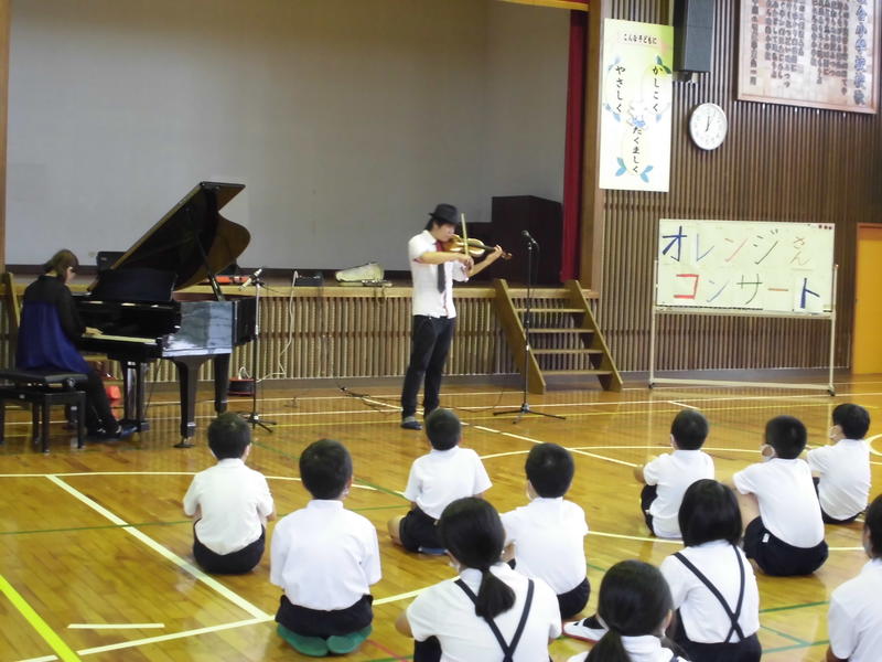 バイオリンとピアノによるデュオ、ORANGEさんコンサートを開催しました。玉名市のアウトリーチ事業を