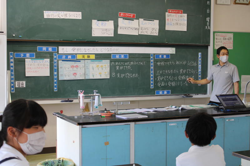 理科の学習では、実験や観察と同時に、板書やICTを効果的に活用して学びを深めています。