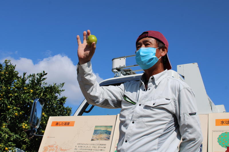 地域学校協働活動推進員の今村先生のコーディネートにより、校区内のみかん農家、大久保さんのみかん畑に