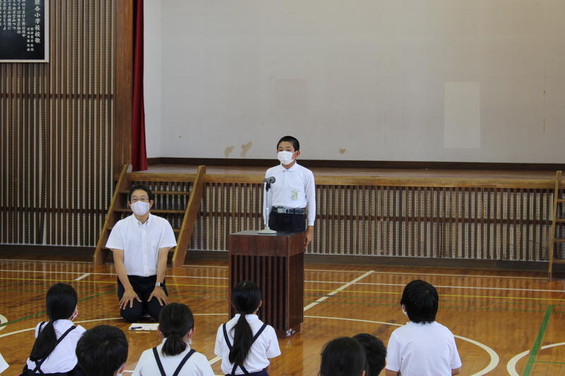 学年の代表児童に、前期で頑張ったことや後期に挑戦したいことなどを発表してもらいました。