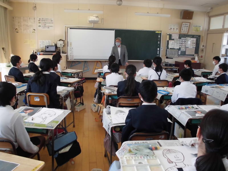 2年生の道徳の時間の最後にGT(ゲストティーチャー)として講話をしました。