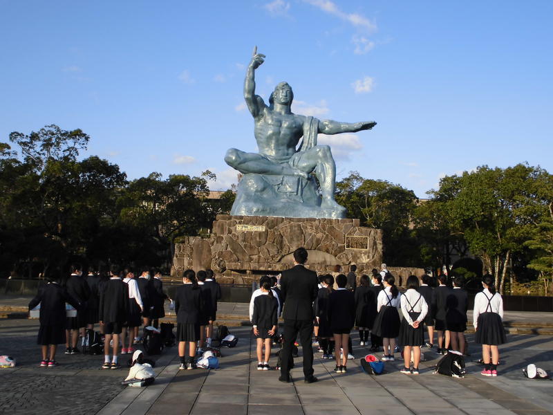 10月30(金)・31日(土)に、長崎へ修学旅行に行きました。コロナ禍の中で実施できるかどうか難しい状況でしたが、保護者の皆様のご理解とご協力、また、岸田観光様のホテル等とのさまざまな調整により、無事実施することができました。本当にありがたいです。子どもたちは、現地で戦争の悲惨さや平和の尊さを学びました。また、講話をいただいた八木道子先生から平和のバトンを受け取りました。この学びを、これからの生活に十分生かしてくれるものと期待しています。