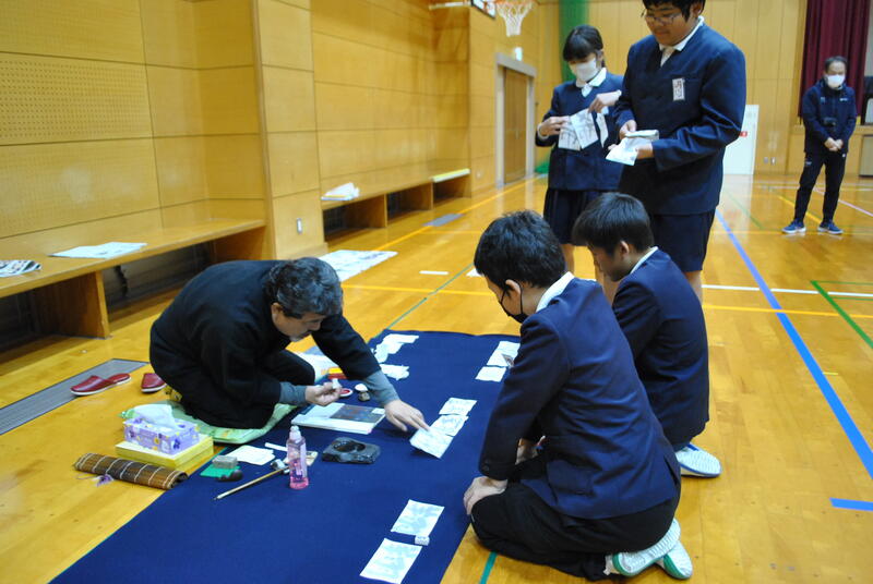 12月9日(火)の2・3時間目に、6年生が卒業制作を行いました。書道家の徳村剛山先生に来ていただき、6年生が墨で漢字一文字を書きました。剛山先生の指導の下、子どもたちは自らで墨をすり、手紙の大きさの紙に好きな漢字を書きました。自分の名前にちなんだ漢字、小学校生活を振り返って思い浮かんだ漢字、自分の将来への期待を込めた漢字など、様々な思いで漢字を選ぶ6年生の姿が印象的でした。卒業まで残り3か月ほどになりましたが、6年生にはこの3か月でもっと多くの思い出を作ってほしいです。最後になりましたが、お忙しい中、鍋小学校に来てくださった剛山先生、本当にありがとうございました。