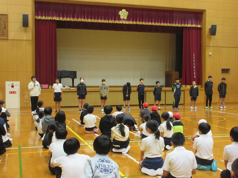 3月6日(金)に6年生とのお別れの会がありました。本来はお別れ遠足をする予定でしたが、雨が降ってしまい、お別れ遠足はできませんでした。そこで、体育館でお別れの会をしました。5年生が考えた「クイズ」「しっぽ取り」「なんでもバスケット」を縦割り班で楽しみました。その後、体育館でお弁当を食べました。遠足ができなかったのは残念でしたが、素晴らしいお別れの会になりました。