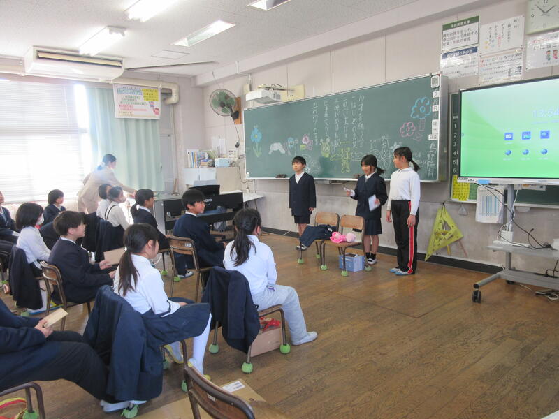 2月20日(金)、今年度最後の授業参観がありました。「1年間でできるようになったことの発表」「環境学習で学んだことの発表」「二分の一成人式」など、各学年、発表が中心の授業参観でした。子どもたちの一生懸命な発表を聞いて、思わず涙ぐんでおられる保護者の方もいました。子どもたちの成長の様子が伝わるすてきな授業参観になりました。
