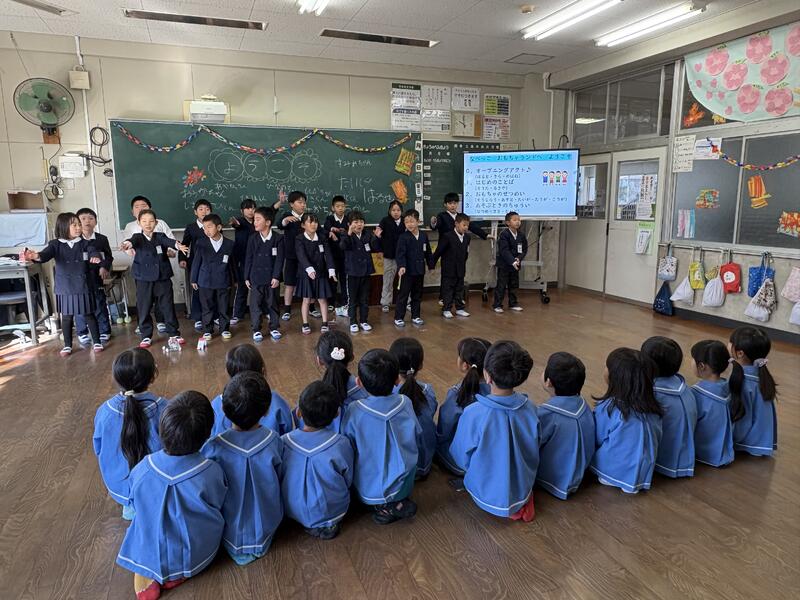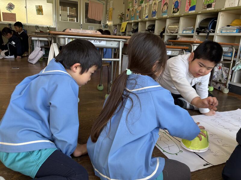 1月14日(水)の2時間目に、2年生がおもちゃランドをしました。鍋保育園の子どもたちを招待して、2年生が作ったおもちゃで遊んでもらいました。保育園の子どもたちにやさしくルールを教える2年生の姿を見て、成長を感じることができました。保育園の子どもたちがとても喜んでいる姿を見て、大満足の2年生でした。