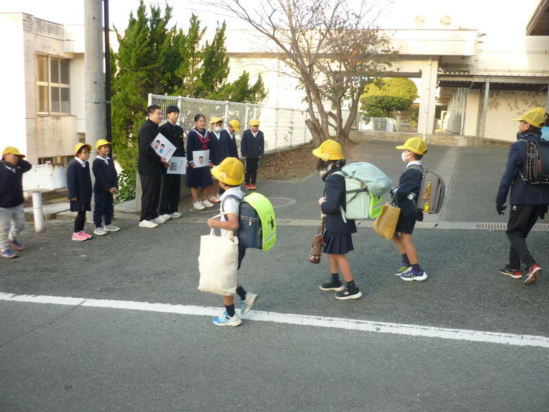 11月20日(月)に、コロナ禍前に行われていた「合同あいさつ運動」を行いました。この取組は、岱明中学校区4つの小学校の卒業生がそれぞれの母校に出向き、小学生と一緒に「あいさつ運動」を行うものです。この日は、鍋小卒業生のお兄さん、お姉さんが6名来て、正門前と体育館前に分かれて小学生と一緒に「あいさつ運動」を行ってくれました。ありがとうございました。