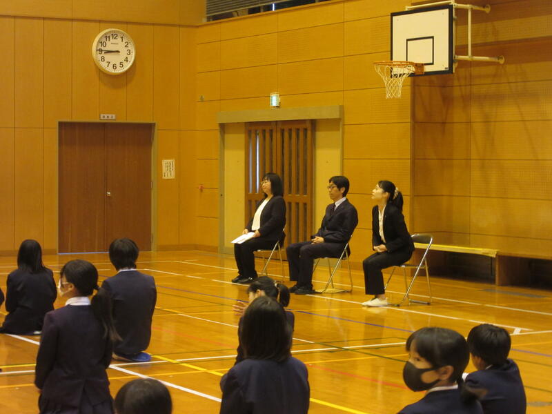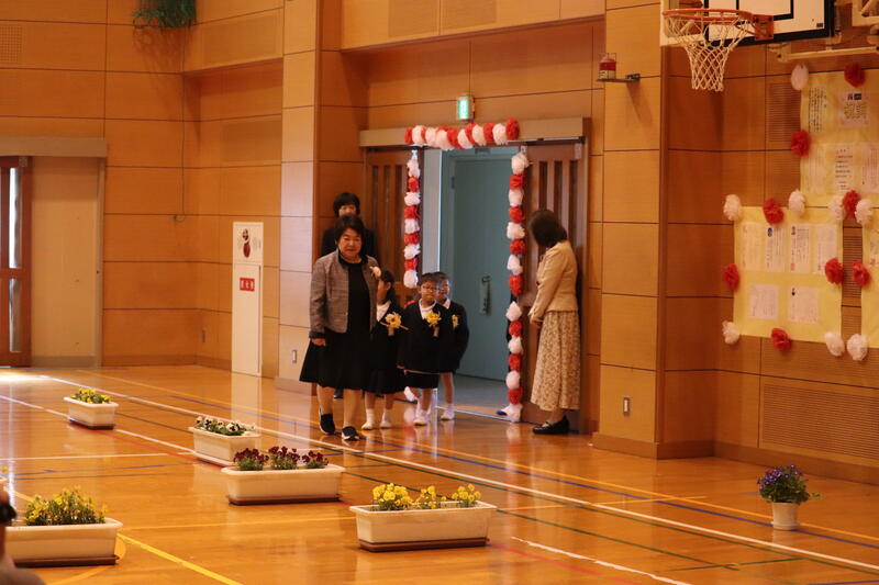 18人の新入生が入学しました。新入生点呼では、みんなしっかりと返事をすることができました。また、5・6年生の堂々とした歓迎の言葉の発表を、1年生が目を輝かせて聞いている姿が印象的でした。