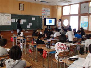 10月15日(木)、4年生教室に、長洲町養魚組合の方々をお招きして長洲町の金魚の歴史、種類、飼育等について学びました。その後、金魚すくいの体験学習を4年生、5年生が行いました。