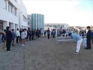 終業式の終わりに、転校する子どもの挨拶がありました。