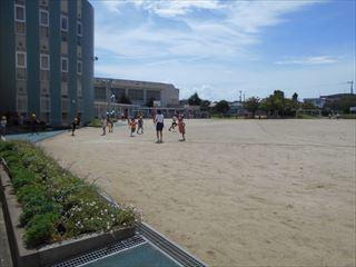 3名の中学生は最後の時間は6年生と楽しくビーチバレーをしました。