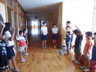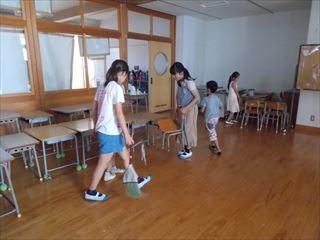 掃除の終わりにはみんなで集まり、今日のふり返りをします。