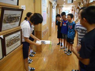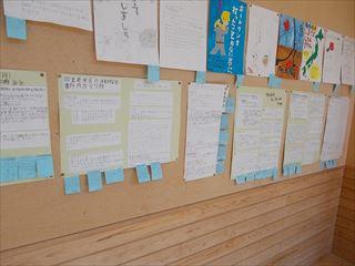 3階の階段上がってすぐの掲示板には、子どもたちが夏休みに取り組んだ