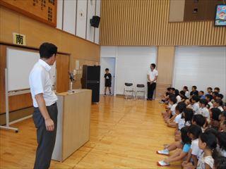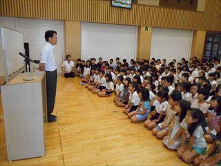 教頭先生より、礼儀や決まりについて話をしていただきました。